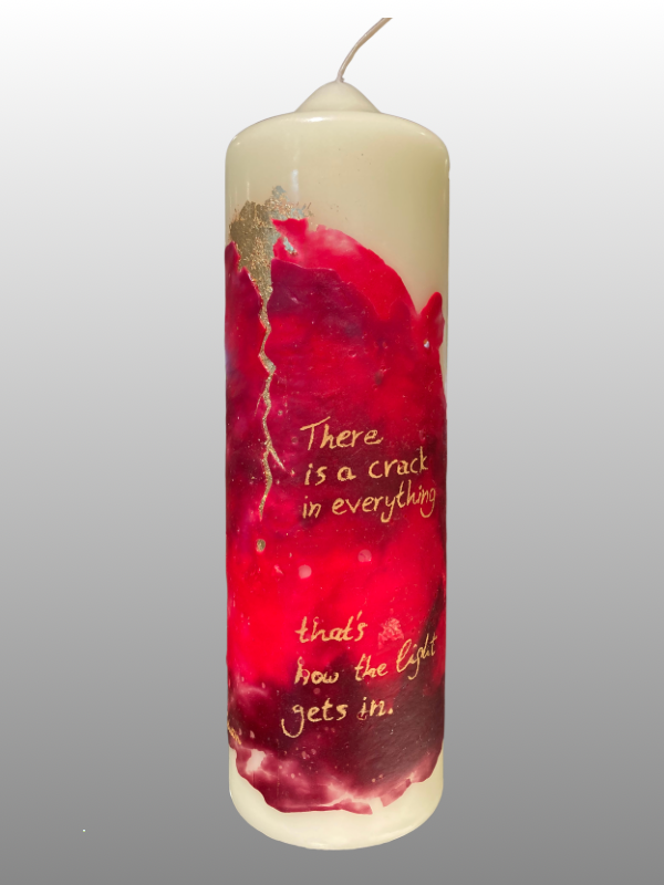 Handgemachte Kerze mit Goldriss & Zitat – „There is a crack in everything“