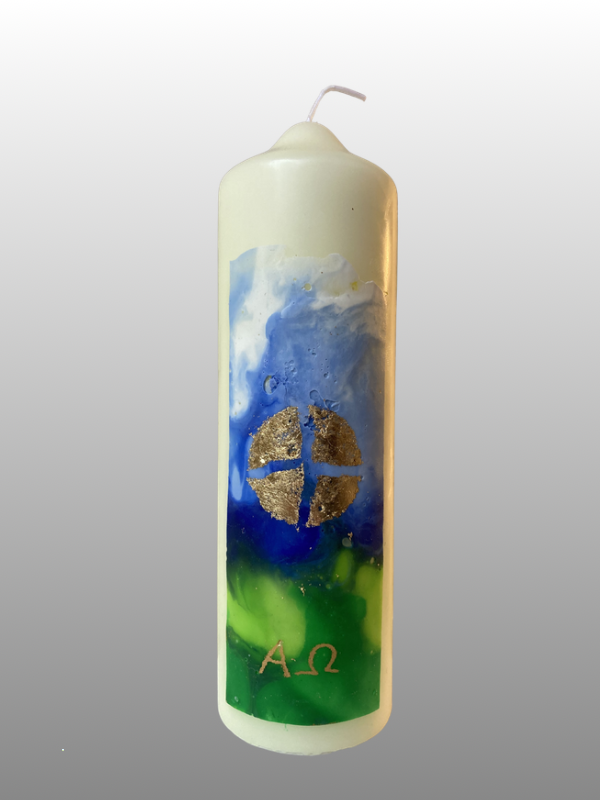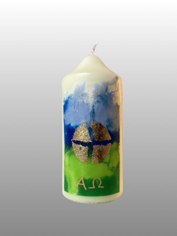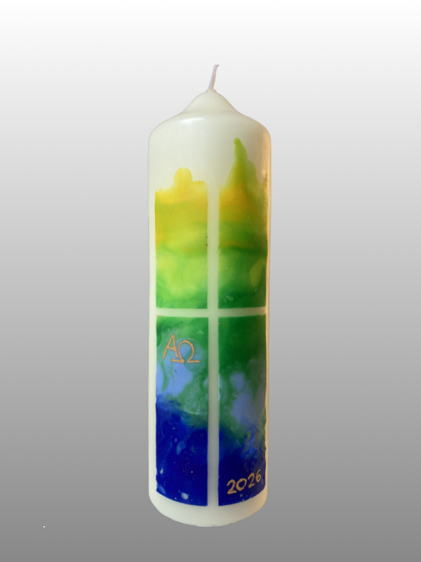 Die kleine Osterkerze „Brot des Lebens“ (165 × 50 mm) ist eine handverzierte Tischkerze mit christlicher Symbolik. Sie steht für Auferstehung, Hoffnung und neues Leben.